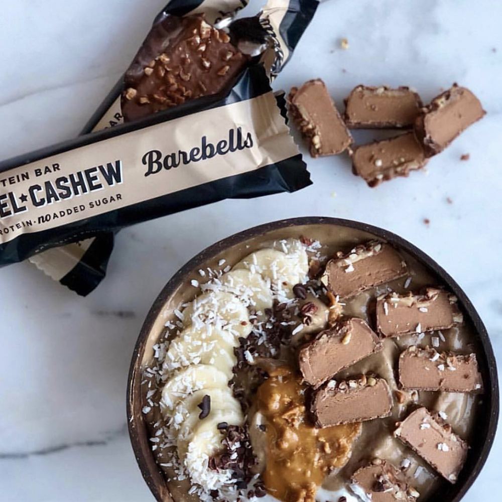 Her får du en hel kasse med 12 styk af Barebells Caramel & Cashew med 55 gram per bar.