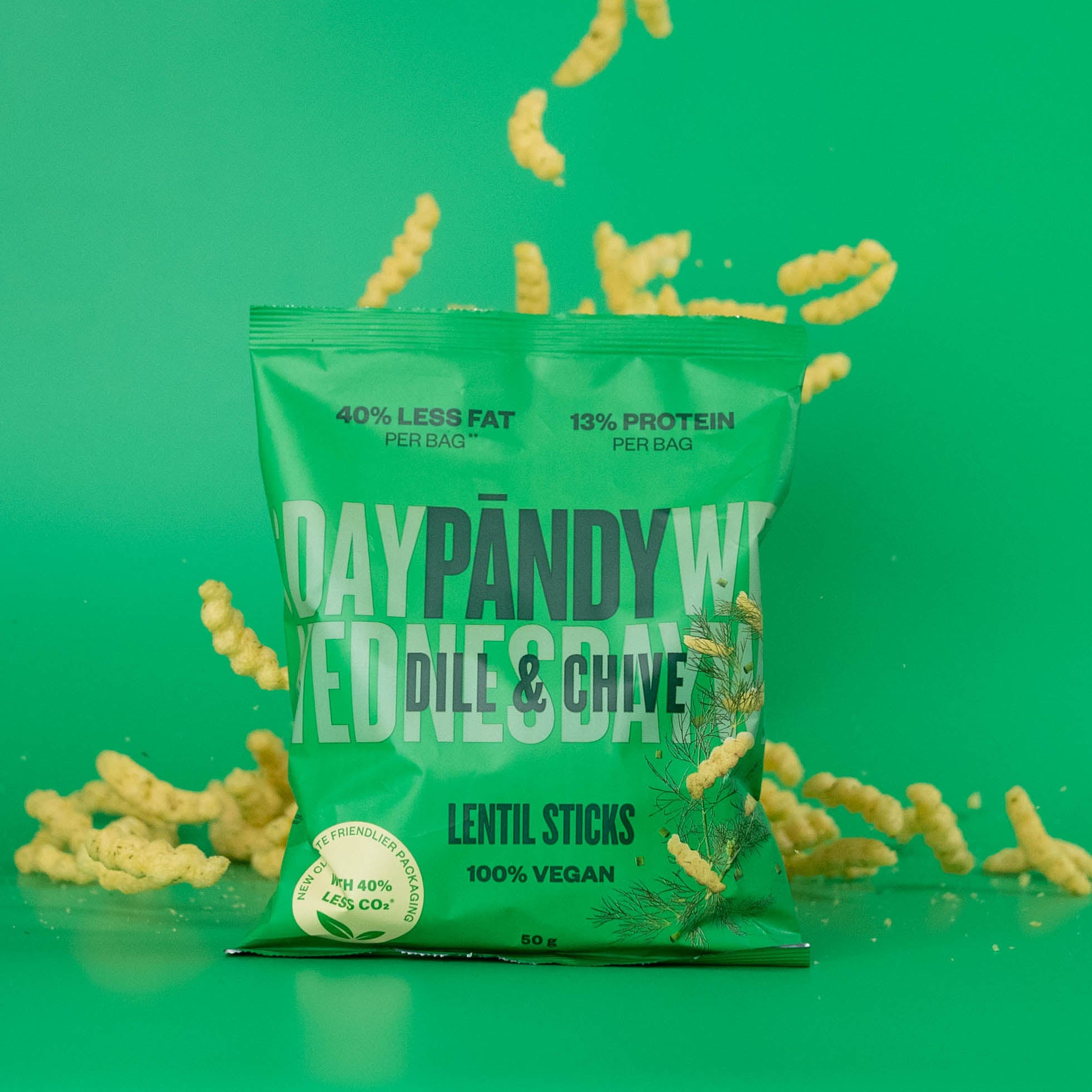 - Hop med en tur i krydderurterne, og oplev frisk dild og nyplukket purløg i den pikante og knasende sprøde Dill & Chive Lentil Sticks.