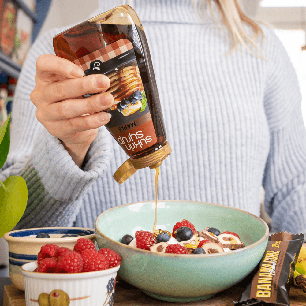 Sukrin Sirup Maple er en lækker sirup med smag af ahornsirup, som er et fremragende kalorie- og kulhydratfattigt alternativ til netop ahornsirup.
