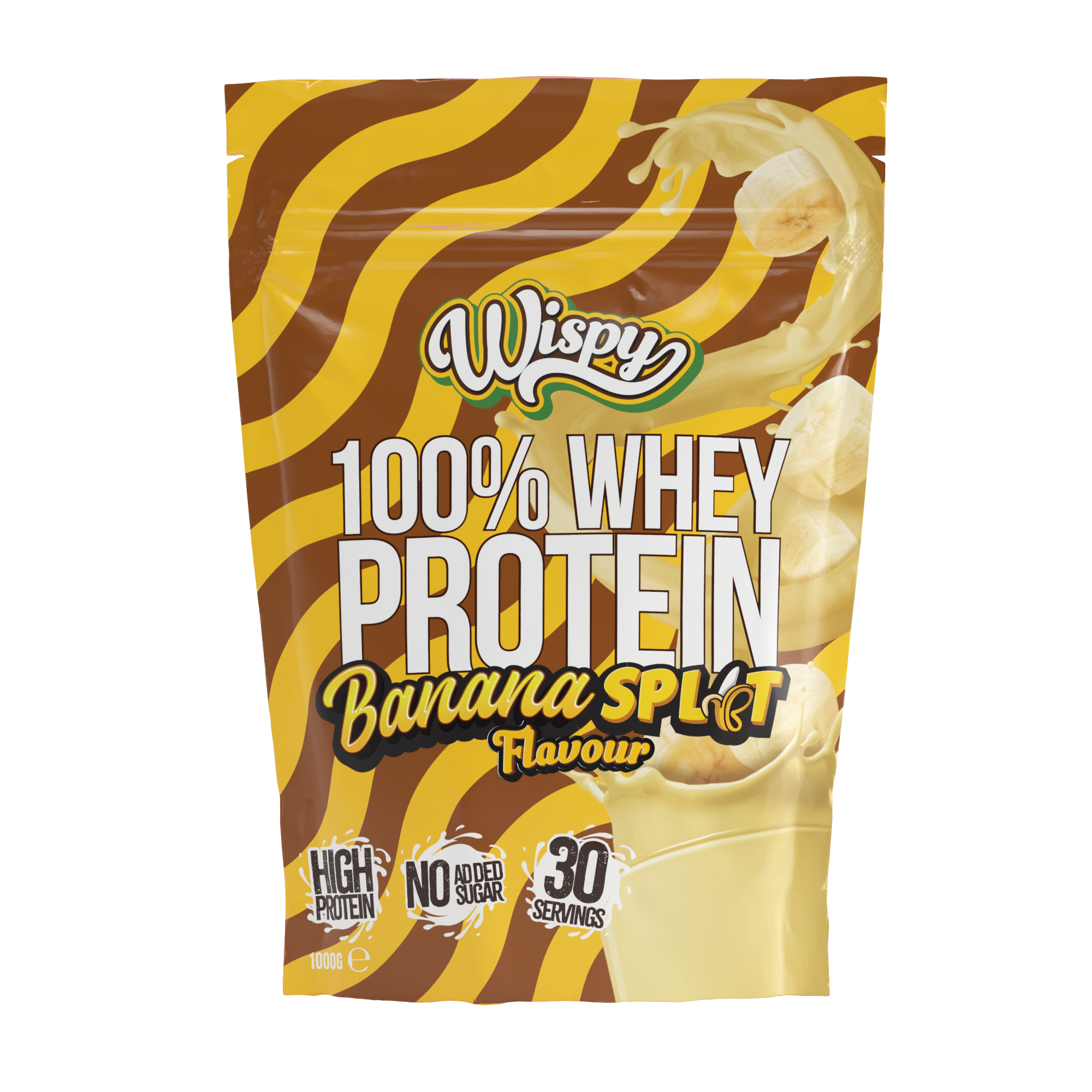 Ét sip, og du er to steder på én gang – i gang med din træning og i gang med at nyde en overdådig servering på en eksklusiv restaurant. Wispy Whey Banana Split gør det muligt.