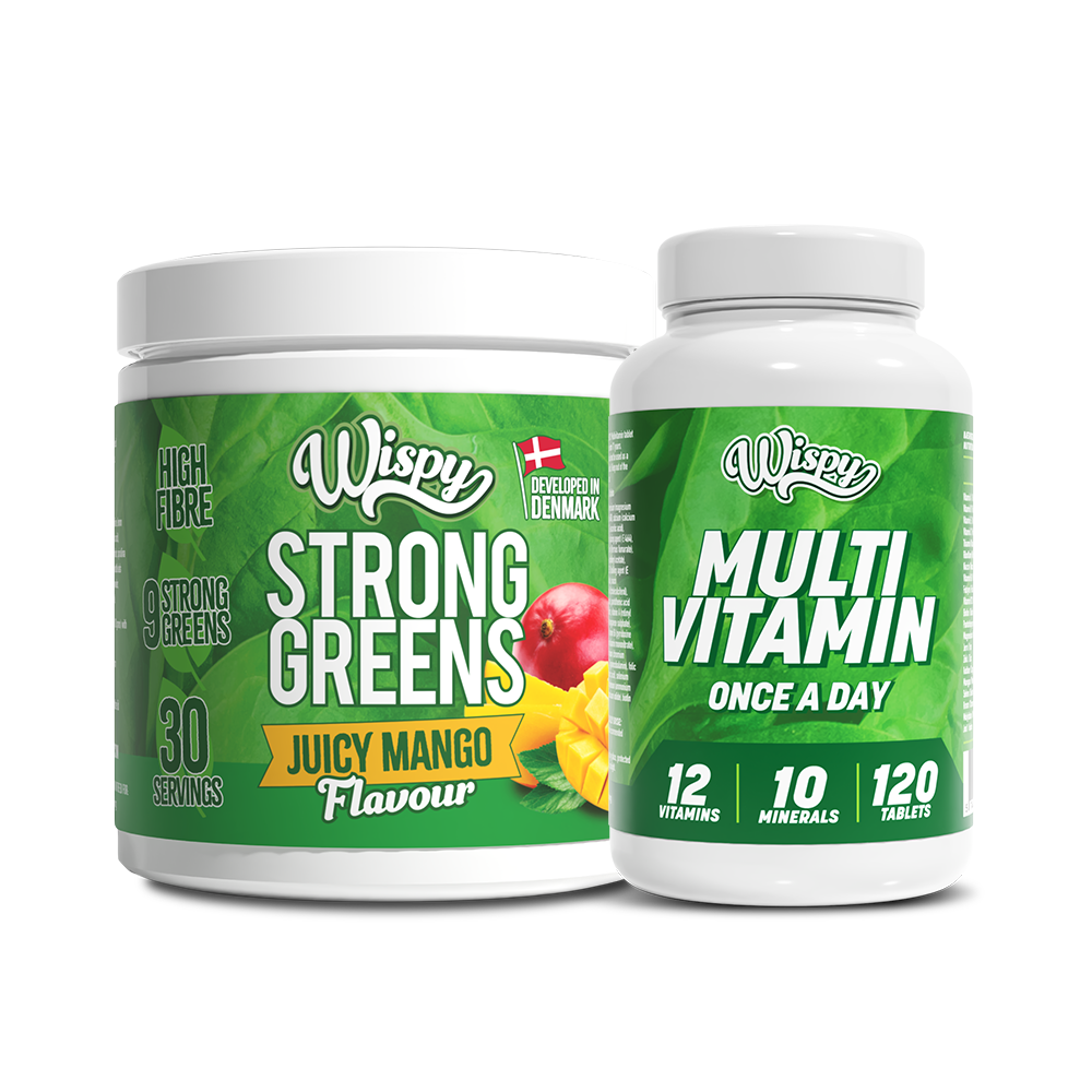 En greens-blanding med grøntsager og kostfibre, der kan indgå som supplement i hverdagen.