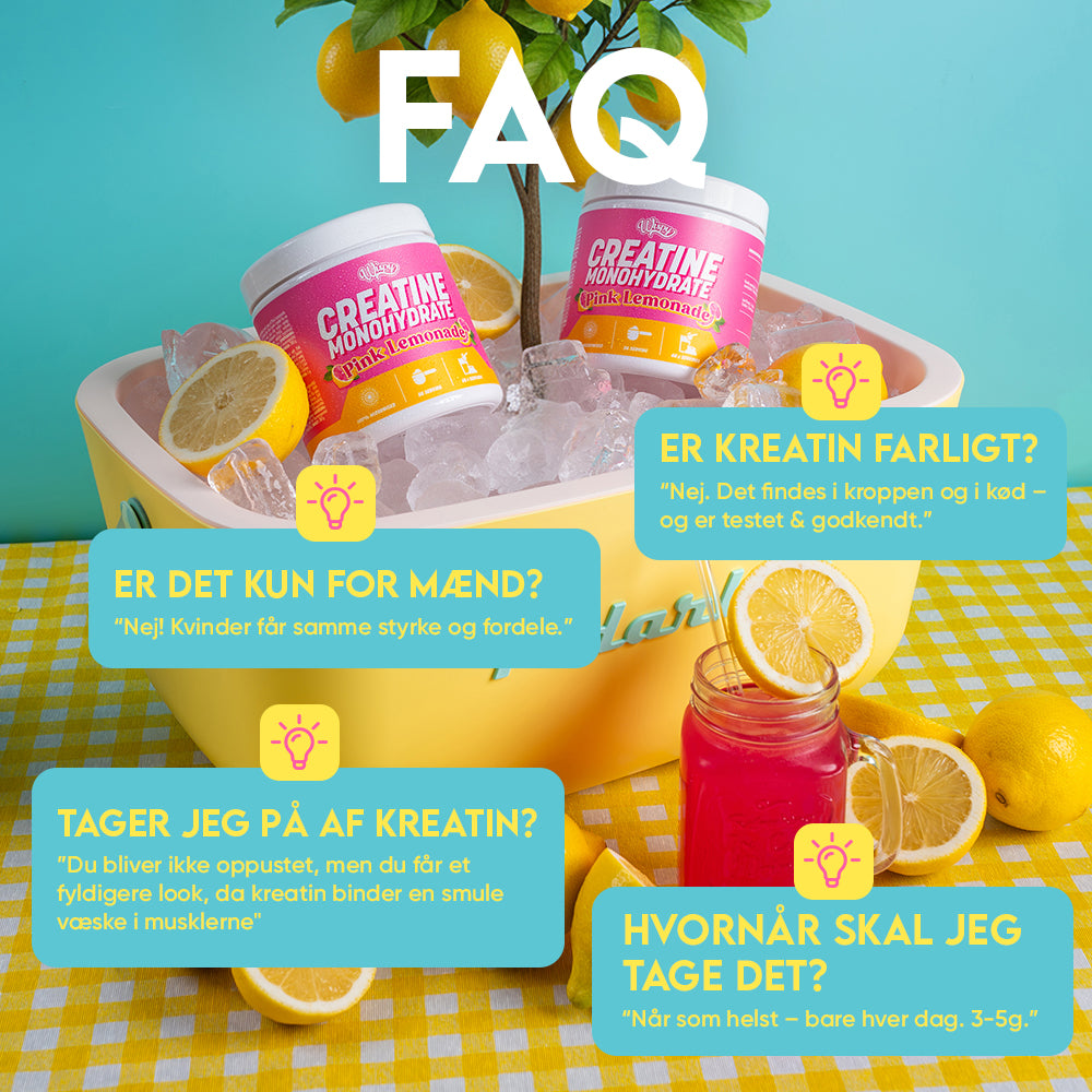 Kosttilskud Kreatin-kosttilskud med smag af Pink Lemonade. Dagsdosis bør ikke overskrides. Kosttilskud bør ikke træde i stedet for en varieret kost. Opløses i 200–300 ml vand, juice eller anden væske. |