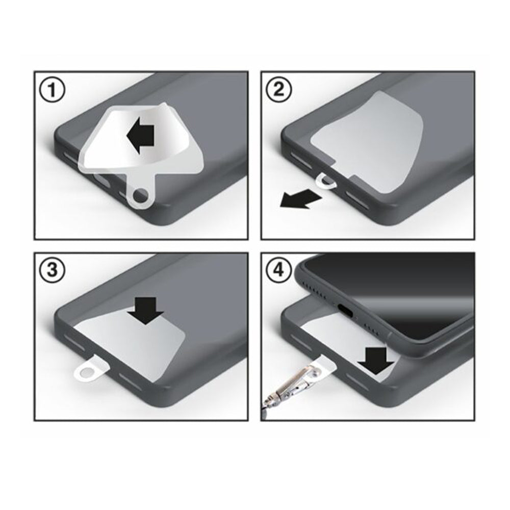 Bæreremmen er fastgjort til din mobiltelefons cover, som er selvklæbende og utroligt nemt at påsætte samt fjerne igen.