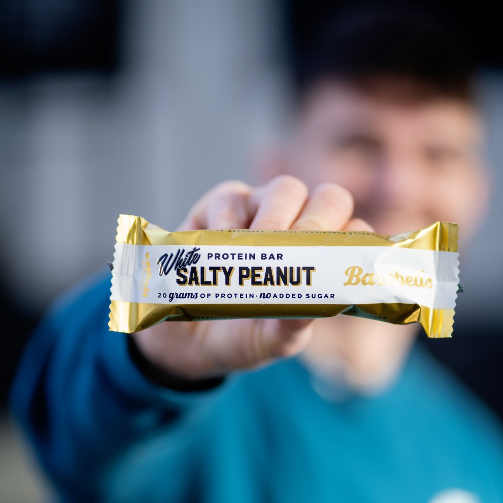 White Salty Peanut – ét af de nyeste skud på stammen fra svenske Barebells. Det er ikke bare hvilken som helst proteinbar, Barebells White Salty Peanut smager himmelsk og er med garanti en af Barebells’ bedste produkter til dato. White Salty Peanut har den lækreste cremede proteinmidte, toppet med den skønneste saltede karamel, knasende peanuts, og er overtrukket med en uovertruffen sukkerfri hvid chokolade. Den helt perfekte kombination af salt og sødt som man slet ikke kan få nok af!