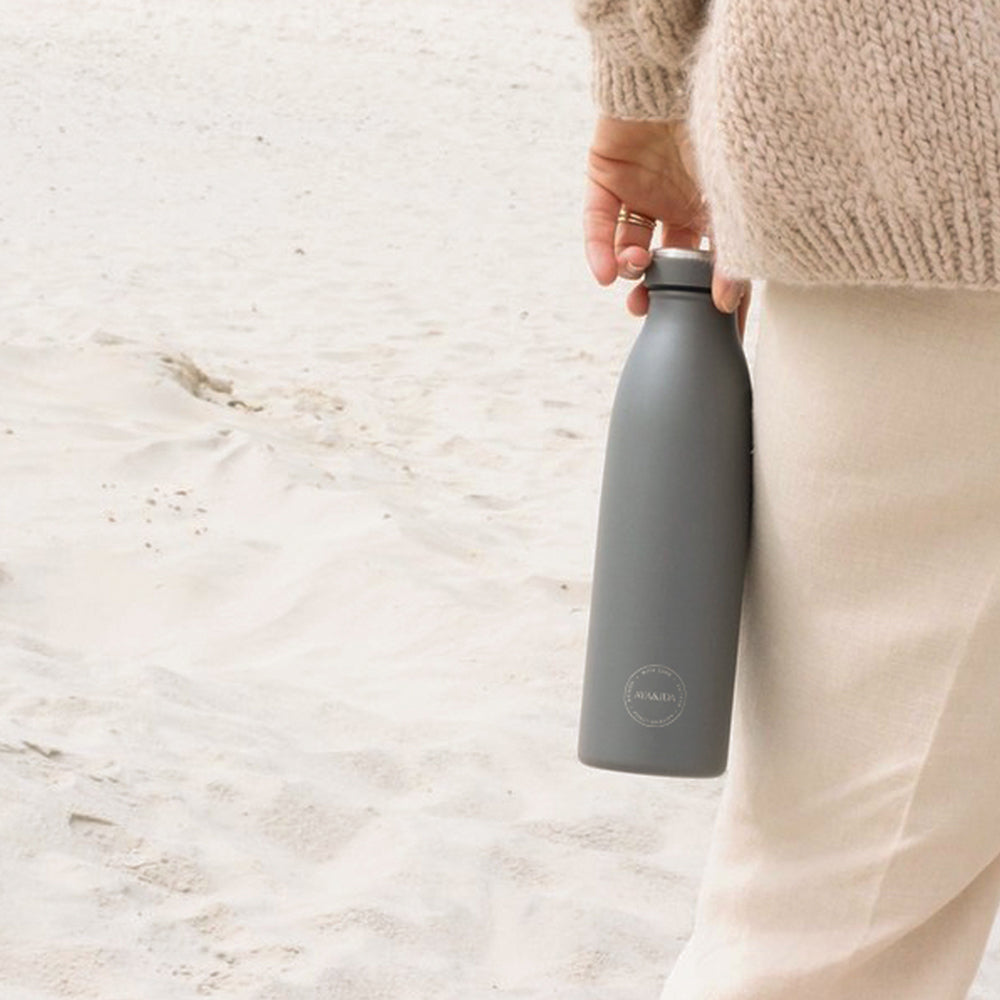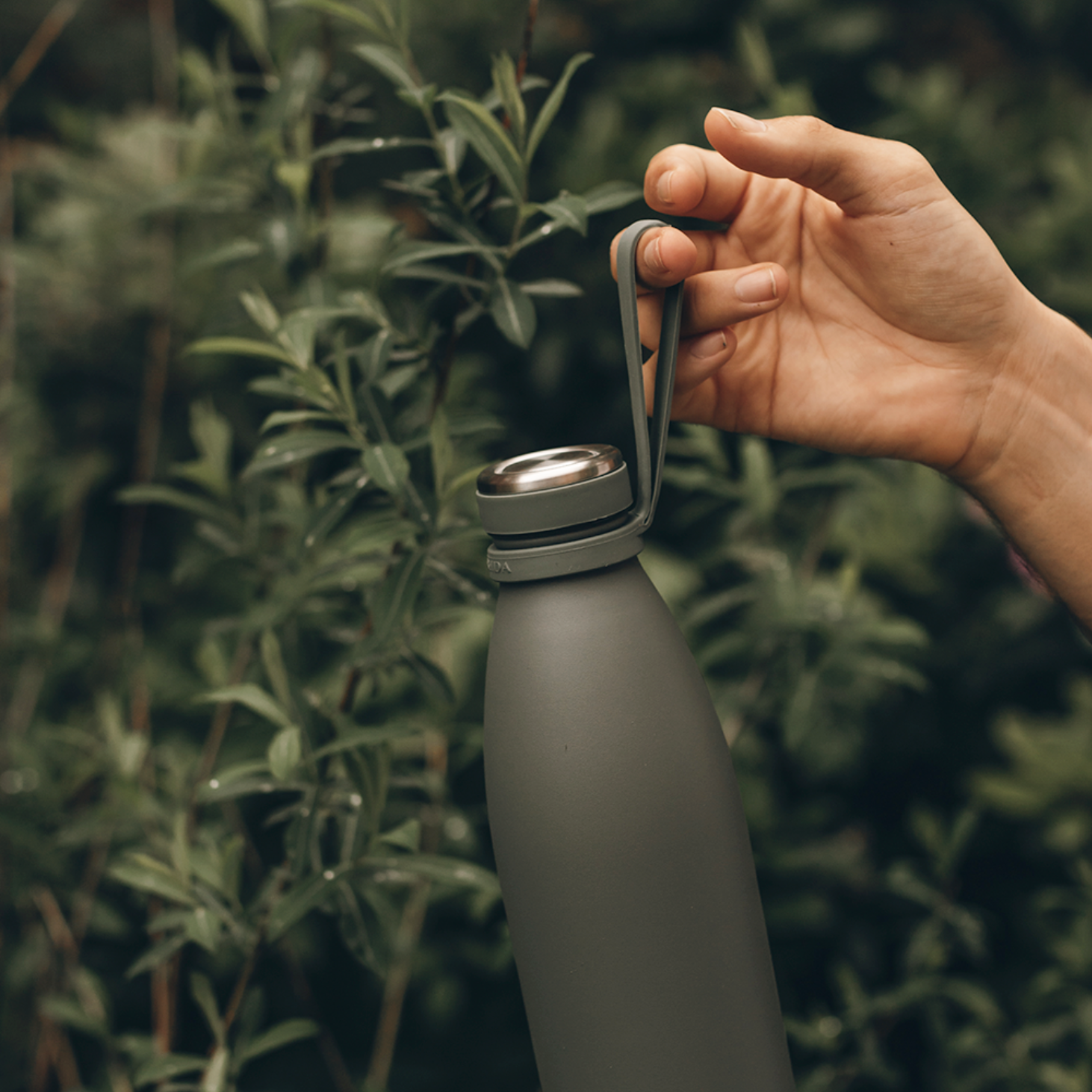 Flasken har en slidstærk powder-coated overflade, der giver et robust greb og et stilrent udtryk i en tidløs farve. Den er fremstillet i rustfrit stål 18/8 – både i selve flasken og indersiden af låget – hvilket sikrer, at smag og kvalitet forbliver uændret.