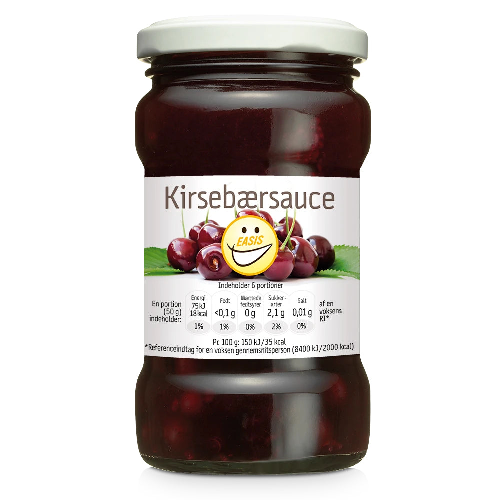Jeg er meget tilfreds med Easis kirsebærsauce. Jeg synes den har en god smag og det er ikke til at smage der er færre kalorier i denne.