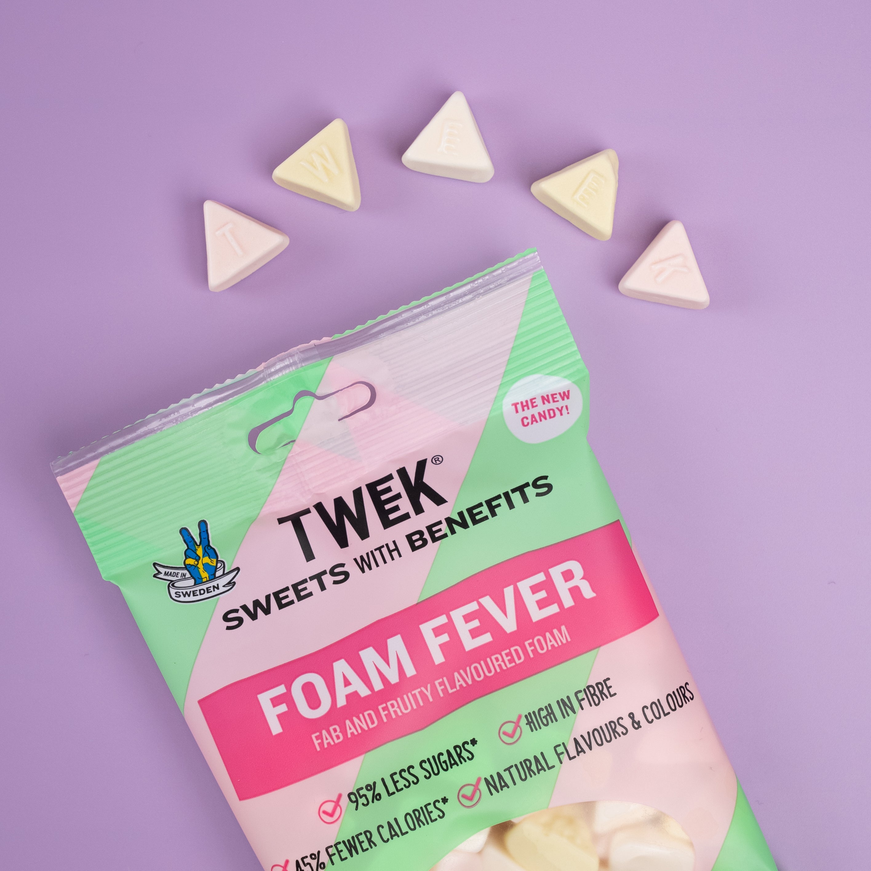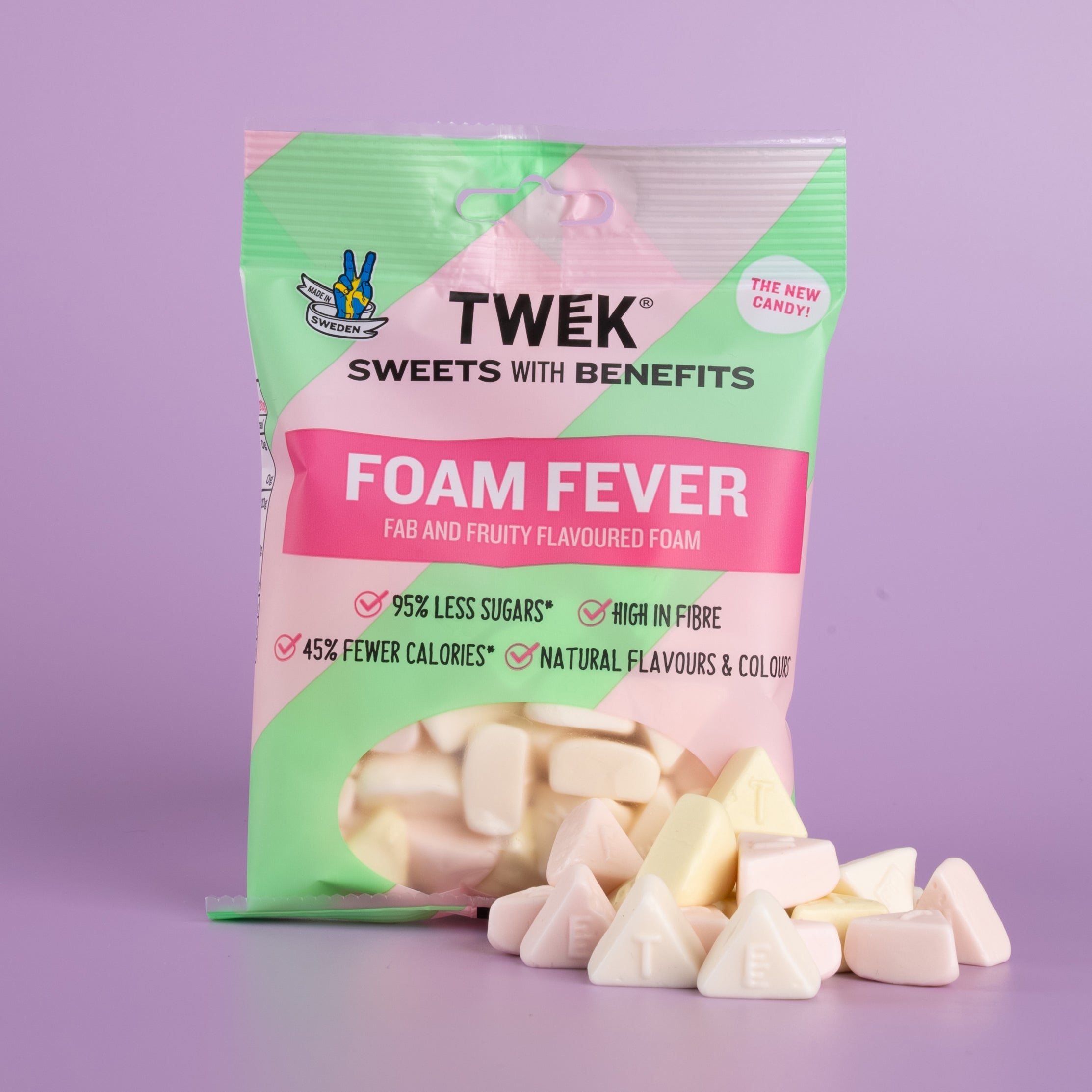 TWEEK er super velsmagende, sukkerreduceret og kalorielet slik, der helt sikkert bliver blandt dit nye favoritsnolder. Foam Fever kommer i små poser á 70 gram, der er lette at have med på farten, eller bruge som fredagssnolder. Slikket har 95% mindre sukker og op til 50% færre kalorier, så du nemt kan nyde en hel pose uden dårlig samvittighed.