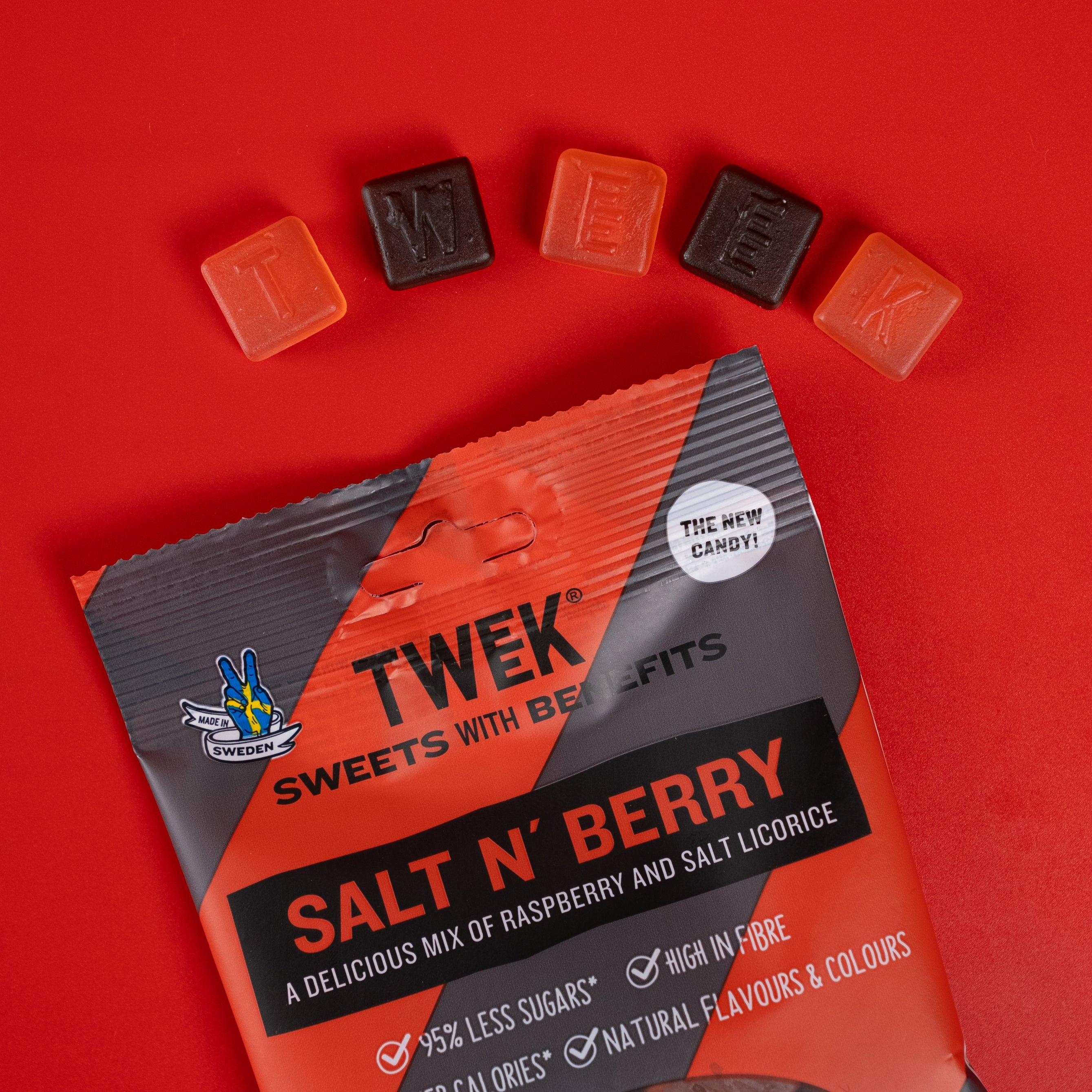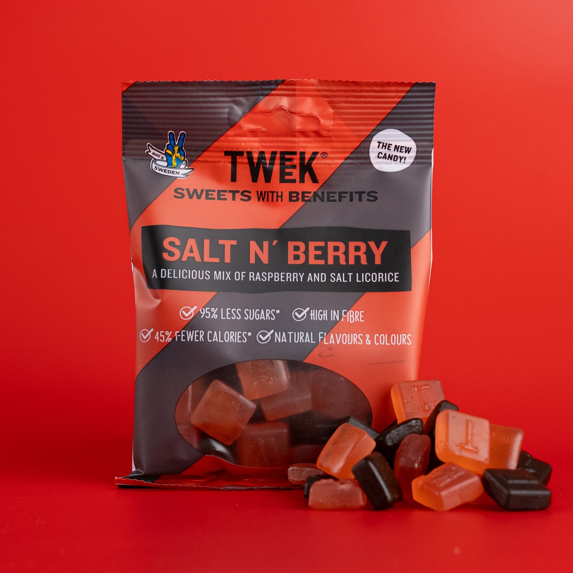 TWEEK er super velsmagende, sukkerreduceret og kalorielet slik, der helt sikkert bliver blandt dit nye favoritsnolder. Salt N' Berry kommer i små poser á 80 gram, der er lette at have med på farten, eller bruge som fredagssnolder. Slikket har 95% mindre sukker og op til 50% færre kalorier, så du nemt kan nyde en hel pose uden dårlig samvittighed.